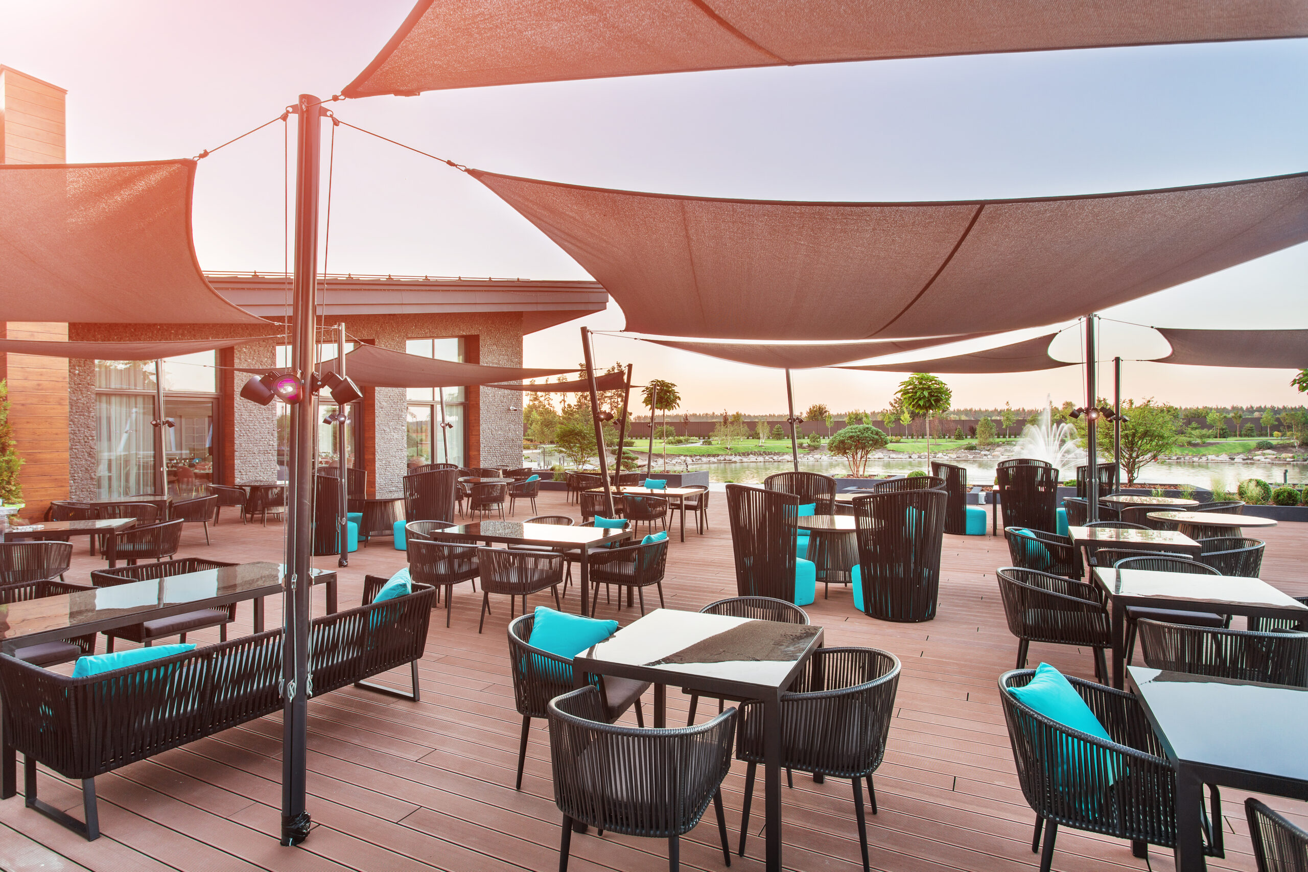 Тераса ресторану Riverwood створена для яскравих заходів сонця, романтичних побачень, веселих посиденьок з друзями або родинних зустрічей. Жива музика та шум фонтану супроводжують літні вечори наших гостей.